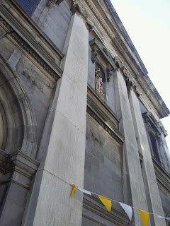 The beautiful blue church interior (and the one with the streamers outside) is the first Catholic church ever built in Ireland. Pictures don't do it justice- trust me.